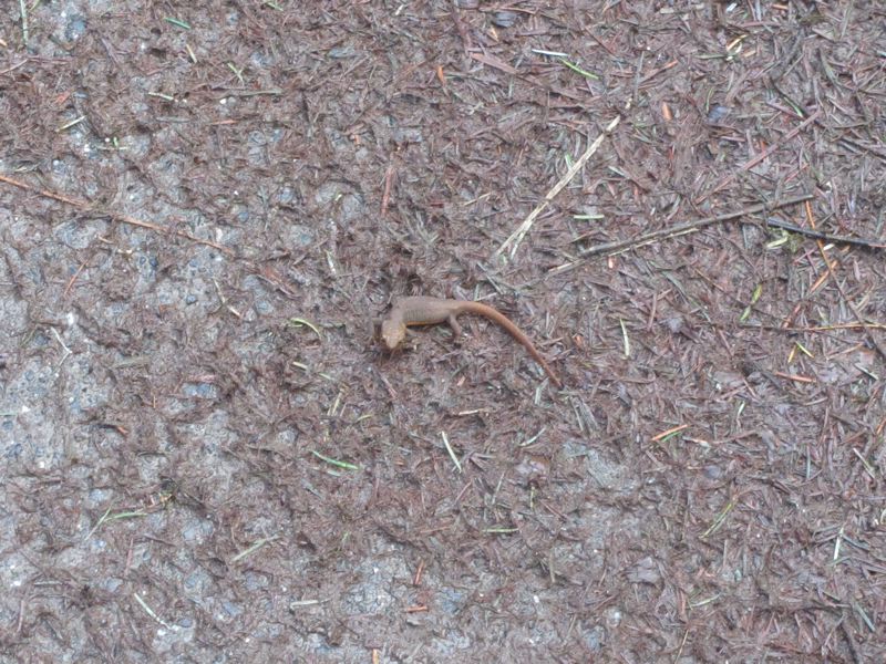 Just a few days ago it was cloudy in town, but the webcam showed fairly good weather. We drove up Hurricane Ridge Road which is almost completely repaved now. We pulled into the parking lot on the ridge, and the conditions were nearly whiteout with thick white fog. Despite this, we decided to press on to the Hurricane Hill trail which starts about a mile and a half past the lodge. We made our way, cautiously, to the far end of the big parking lot. The road dropped and the fog lifted.