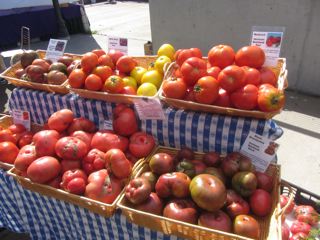 We had a very slow summer this year with just about everything coming in late, but now the market is in its harvest bloom with the autumn squashes, chard, potatoes, carrots, cabbages and the like coming. There are a few summer treats, like tomatoes, left, but this may have been their last week. Farmers' markets are about reflecting the seasons, so we are welcoming autumn and its bounty.