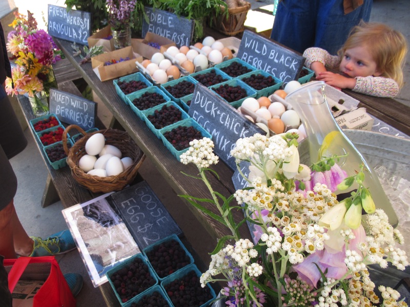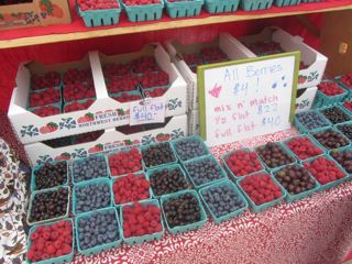 Duck and chicken eggs and lots of berries, but we don't remember the name of the farm