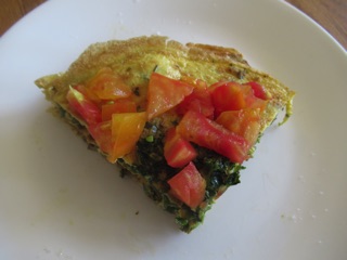 With all this wonderful produce coming in, we had to make a crespiou, a French stacked omelet where each layer features a few ingredients. We only made four layers; the details are with the photos. We also got some zucchini blossoms and fried them in searing hot olive oil. All told, it was a real farmers' market treat.