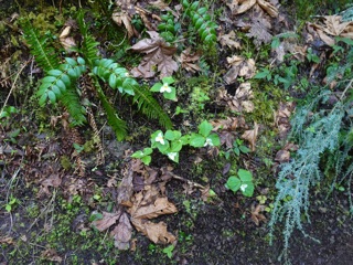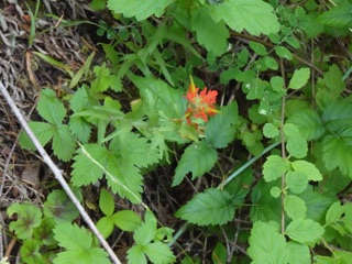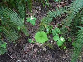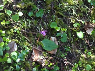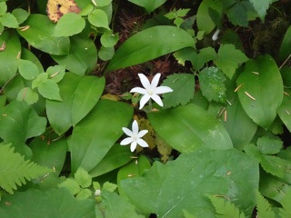 We didn't get very far on the Little River Trail, just to the "healing pools", a section of the trail where it is easy to get down to the river and wade. The cold water does wonders for one's feet. Along the way, the spring flowers had given way to the summer flowers. There were trilliums with their pods but no flowers, but the blood root and Pacific dogwood were in bloom.