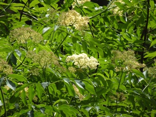 We hiked from Madison Falls to the Altair Bridge over the Elwha River. It's basically summer now, so we're watching the elderberry flowers, and we can't help but notice all the swallowtail butterflies. This is a great year for them.