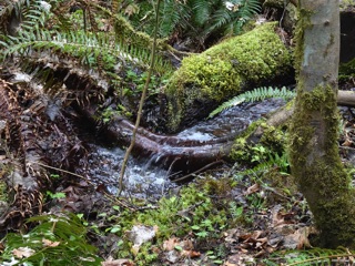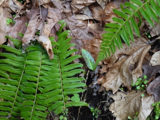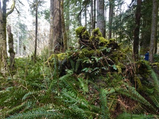 We were well rewarded. Our goal was skunk cabbage, and there was lots of skunk cabbage, especially past the ranger station as we approached the bridge. It grows in the drainage ditches and flooded areas of forest.