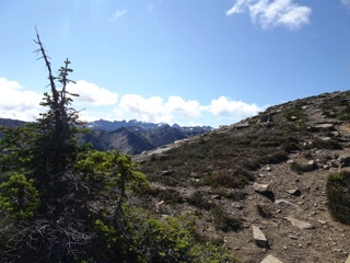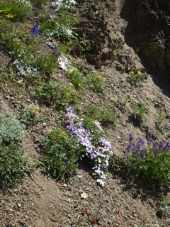Once again we climbed Hurricane Hill. We got the last parking spot at one of the picnic areas and hiked 1/4 mile from there to the main trailhead. It was a beautiful sunny day, and the alpine flowers were in bloom. There was the heady sense of phlox, paintbrush, lupines, pask flowers and a host of others which is our way of saying we don't remember their names. There were no marmots, but there was a herd of deer down below the trail. We were surprised to see so many.
