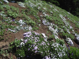 We continued past the Wolf Creek Trail junction and up to the picnic areas. The bathrooms there were closed. Then, up the hill we went to the Hurricane Hill Trailhead parking lot. There were lots of spots. There was also a spectacular view, and, even better, the phlox was starting to bloom. There wasn't a lot of it, but we could pick up the scent. It's a sweet scent and one of the great scents of the high country.
