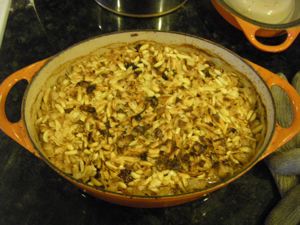 The layers all bake together and get scooped out and served together. We used a really good, spicy curry. The dish was a tad sweet, but quite good. It's sort of a stylized version of a ten boy curry, a perfect casserole dish for the cold season.