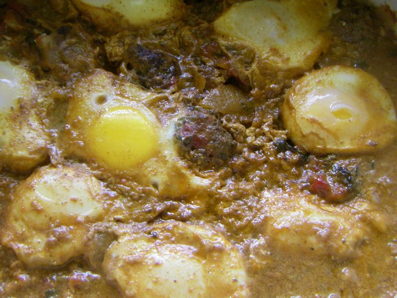 2. Combine all the sauce ingredients (except for the eggs) in a large pot or pan. Pour in any juices from the meatballs. Cook uncovered for about 30 minutes until it is reduced to a rich gravy.