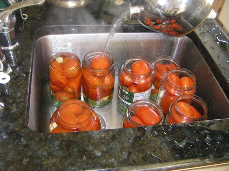 Store all the jars, upside down, wrapped in a heavy blanket. They'll stay hot for at least two days, cooking and ripening all the time.