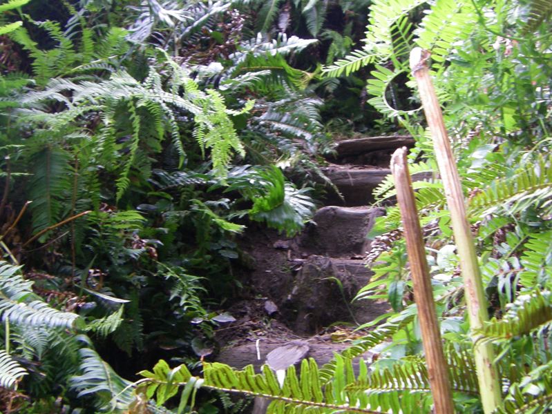 We made it as far as the first headland climb, up into the rain forest. It was almost like climbing a ladder made of tree roots. At the top, we could look through the foliage and see the rocky outcrop that jutted out to the sea like a lost Mayan temple in some adventure romance. We turned around there. We like our adventures, but we like them bite sized.