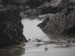 We didn’t go all that far, just up to the first headland. The tide was nice and low, so we could explore the tidepools. We barely noticed Ellen Creek. It flows beneath the sands, so we had to check inland to make sure it was still there. To the north, the sea stacks and tide pools beckoned. We found anemones, but no starfish. We have been following their slow recovery, so this was a little disappointing.