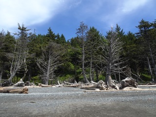 Since we like to get some exercise, we usually head out to Second Beach which is just across the Quillayute River. There is some satisfaction with the 3/4 mile rain forest walk you have to take to the surf, but Rialto beach offers instant gratification.