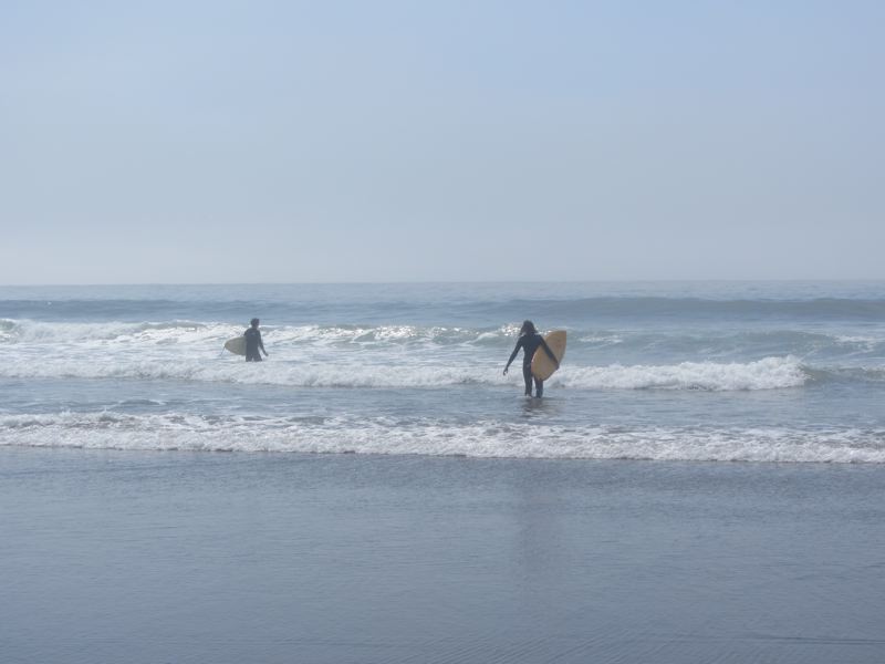 There were a lot of folks camping, including a den of pirates, possibly hiding out from the minions of the RIAA. We also saw a few surfers, black forms in their wet suits. They splashed their way out from shore, then rode the waves gracefully back to the shallows. Second Beach is not a tropical paradise like Waikiki. It's a more mysterious place with fog, cold water and an essential wildness, and all the more attractive for it.