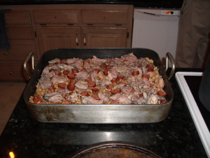 Do be advised that the beans will grow, so don't worry if your pot looks huge in comparison to the mixture. You may wind up needing a second pot anyway. Also, this is a forgiving dish. If you forget to add something, add it later. Precise timing is not as important as putting it all together.