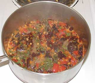 pepper coarsely. Remove the stems from the dried red peppers and cut them into squares with a sharp knife. |