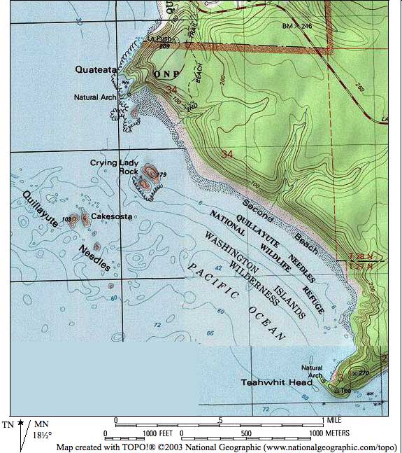 SECOND BEACH REOPENED Second Beach was closed for nearly two years in a dispute between the local Quillayute tribe and the federal government. The tribe is centered at La Push, just down the road from Second Beach, and it has long been seeking high ground in the event of a tsunami. Various land swaps had been proposed, but since the lands were variously national park land or tribal, congressional action was necessary. While, as of April 2007, no agreement has been signed, some agreement has been made to the tribe's satisfaction, and Second Beach has been reopened to the public. |