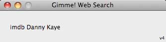 The Gimme! search window doesn't look like much. Start up Gimme!, hit F3, pressing the little "fn" key so you actually get an F3 and not Expose or something. That's what you'll see. |