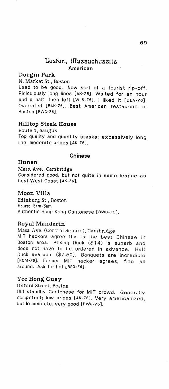 This 1976 Yum Yum Dining Guide is from the Kaleberg Symbiont Archives