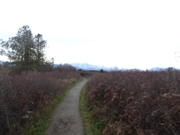 This isn't one of our most ambitious hikes. It's just heading south from the Dungeness Spit parking lot along the water and then cutting inland. It offers great views of the Strait of San Juan de Fuca and the Olympic Mountains. This time, everything was fog enhanced. The sky was a spectacular gray and the mountains blurred in the distance. It was an easy enough walk but very rewarding.