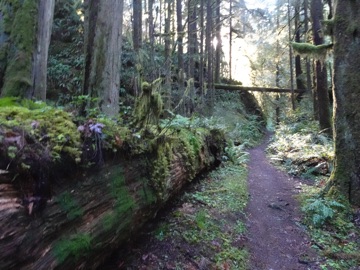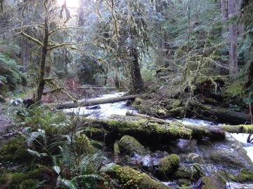 With all the rain this winter we decided to head up the Little River Trail where we were rewarded with a little river in full spate and a misty forest trail. Here and there we were slowed by windfall, but the trail was easy going. Once in the national park proper, we descended to the roaring river and mystical forest.
